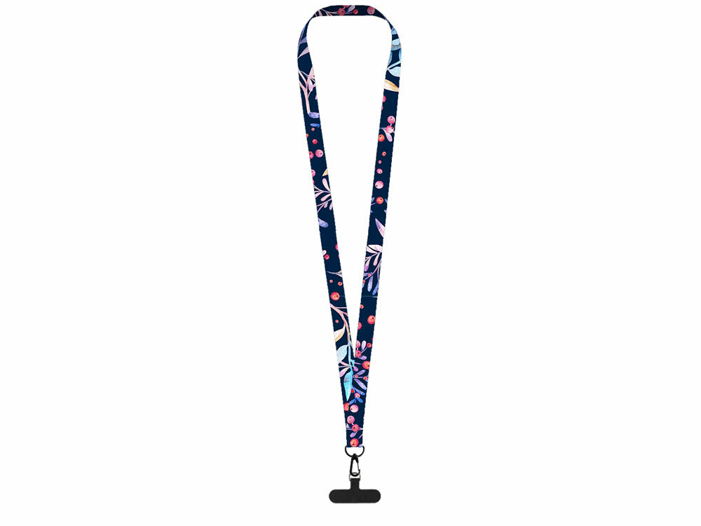 Ланъярд 2 см под сублимацию с трендовым карабином и узким держателем для телефона из ПЭ, черный в ассортименте цветов, материалов и моделей