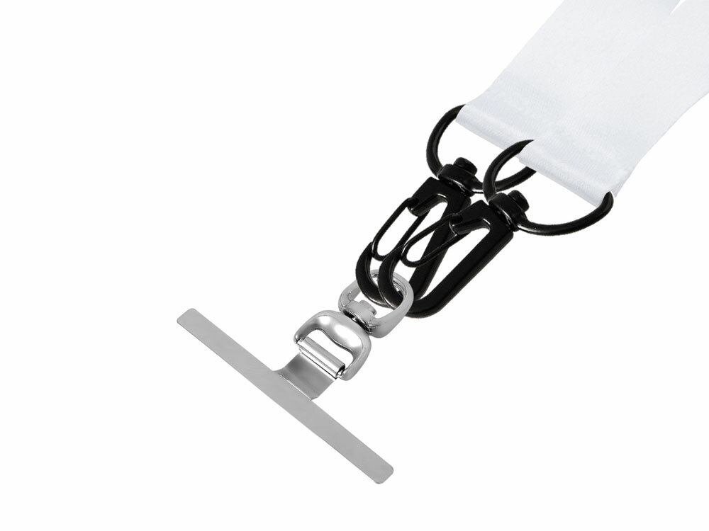 Ланъярд 2 см под сублимацию с 2-мя трендовыми карабинами и металлическим держателем для телефона, черный в ассортименте цветов, материалов и моделей