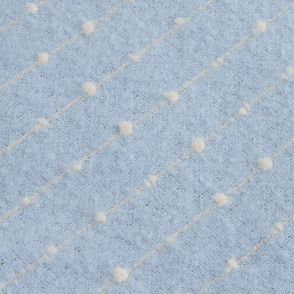 Изысканный плед небесно-голубого оттенка покоряет своим дизайном с первого взгляда. Особая текстура выпуклого узора в точку делает изделие не только визуально привлекательным, но и невероятно приятным на ощупь. Изящный пунктир, плавно переходящий на декоративную бахрому, придает пледу неповторимый шарм и элегантность.