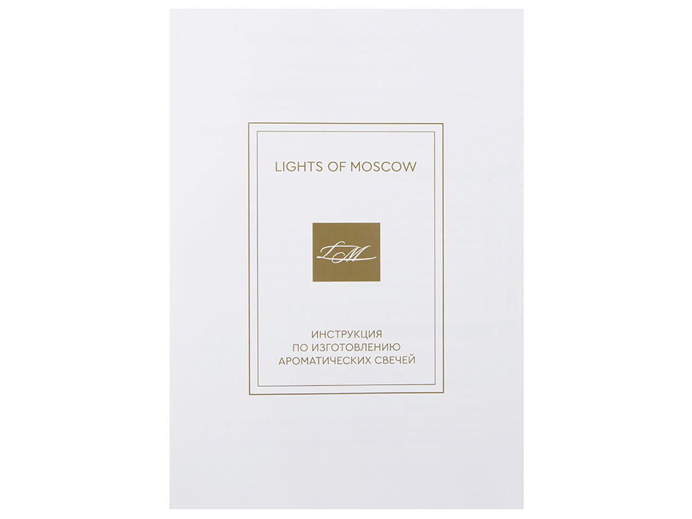 Уникальный набор для изготовления ароматических свечей станет приятным подарком и погрузит в увлекательный процесс. Набор выполнен в подарочной коробке с ложементом, в него входят все необходимые компоненты и подробная инструкция. Откройте для себя удивительный мир ароматов с Lights of Moscow! Вы сможете создать две невероятные композиции, которые точно понравятся Вам и Вашим близким! Условия хранения: — Свечи: +18…+24 °C, вдали от источников тепла, сквозняков и прямых солнечных лучей. — Рекомендуемая влажность — не более 50%. — Избегайте длительного воздействия яркого света. В комплекте: Подарочная брендированная коробка с ложементом - 1 шт. Стакан стеклянный матовый с тиснением логотипа LM 100 мл - 2 шт. Контейнер с соевым воском – 2 шт. Флакон стеклянный матовый c тиснением логотипа LM с ароматической отдушкой – 2 шт. Деревянный фитиль с держателем – 1 шт. Хлопковый фитиль с держателем - 1 шт. Наклейка для крепления фитиля - 2 шт. Палочка для перемешивания - 2 шт. Салфетка - 1 шт. Перчатка - 1 шт. Открытка - 1 шт. Инструкция по изготовлению ароматических свечей – 1 шт.