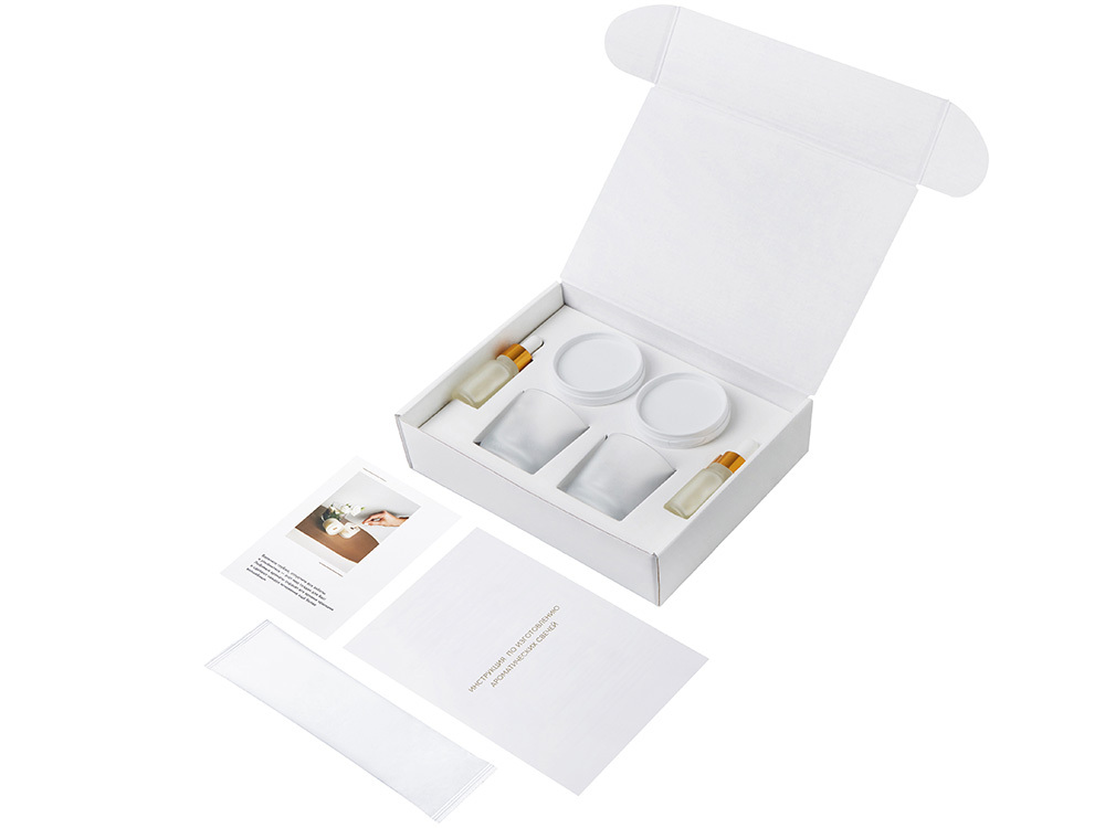 Уникальный набор для изготовления ароматических свечей станет приятным подарком и погрузит в увлекательный процесс. Набор выполнен в подарочной коробке с ложементом, в него входят все необходимые компоненты и подробная инструкция. Откройте для себя удивительный мир ароматов с Lights of Moscow! Вы сможете создать две невероятные композиции, которые точно понравятся Вам и Вашим близким! Условия хранения: — Свечи: +18…+24 °C, вдали от источников тепла, сквозняков и прямых солнечных лучей. — Рекомендуемая влажность — не более 50%. — Избегайте длительного воздействия яркого света. В комплекте: Подарочная брендированная коробка с ложементом - 1 шт. Стакан стеклянный матовый с тиснением логотипа LM 100 мл - 2 шт. Контейнер с соевым воском – 2 шт. Флакон стеклянный матовый c тиснением логотипа LM с ароматической отдушкой – 2 шт. Деревянный фитиль с держателем – 1 шт. Хлопковый фитиль с держателем - 1 шт. Наклейка для крепления фитиля - 2 шт. Палочка для перемешивания - 2 шт. Салфетка - 1 шт. Перчатка - 1 шт. Открытка - 1 шт. Инструкция по изготовлению ароматических свечей – 1 шт.