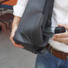 Легкий компактный городской рюкзак HiPack черного цвета, обладатель премии Good Design Award 2019. Размер рюкзака 43х33х16 см, объем 14 л, вес 900 гр. Сделан из высокопрочного устойчивого к порезам и трению водоотталкивающего многослойного полиэстера, не требующего специального ухода. При необходимости его достаточно протереть влажной салфеткой. Конструкция достаточно жесткая, не деформируется. Детально продуманная организация отделений позволяет грамотно распределить вес и снизить нагрузку на плечи. Самые тяжелые предметы располагаются ближе к спине, например, отделение размером 34х26х3 см для ноутбука диагональю до 15,6”. Благодаря плотной перегородке ноутбук надежно фиксируется и не перемещается при ходьбе. Специальная анатомическая конструкция снижает нагрузку на плечи и спину, и вес рюкзака воспринимается на 20-25% легче, чем при использовании стандартных моделей рюкзаков. Вентилируемая спинка с мягкими анатомическими вставками. Конструкция рюкзака позволяет открывать его под тремя разными углами: 30°, 90°, 180°. Если необходимо достать какие-либо мелочи, достаточно открыть под углом в 30° или 90°, а для того, чтобы аккуратно уложить в рюкзак много различных предметов, просто положите его и раскройте на 180°. Дополнительно основное отделение оснащено тремя открытыми карманами под мелочи, двумя карманами 22х16 см и 22х13 см на молниях и двумя карманами 12х16 см, в один из которых можно поместить powerbank, т к в него приходит USB-кабель, который соединен с портом на внешней стороне рюкзака для легкого подключения к смартфону. Молнии YKK основного отделения рюкзака HiPack фиксируются с помощью кодового замка TSA007 с функцией таможенного досмотра, который скрыт на внутренней стороне клапана бокового отделения, и расстегнуть его без вашего ведома невозможно. Это боковое отделение является водонепроницаемым и идеально подходит для того, чтобы положить в него зонт или бутылку с водой. Карман закрывается магнитной застежкой и легко доступен для вас. На каждой лямке рюкзака есть по одному easy access карману для карточек, проездных, документов и прочих мелочей размером 6х10 см. Дополнительно на правой лямке есть петелька, за которую можно прицепить очки или проводные наушники. На спинке рюкзака есть внешний потайной карман размером 23х12 см на молнии. Также на спинке находится специальная лямка для крепления рюкзака на выдвижную ручку чемодана. Сверху расположена мягкая ручка, за которую при необходимости удобно нести рюкзак в руках.