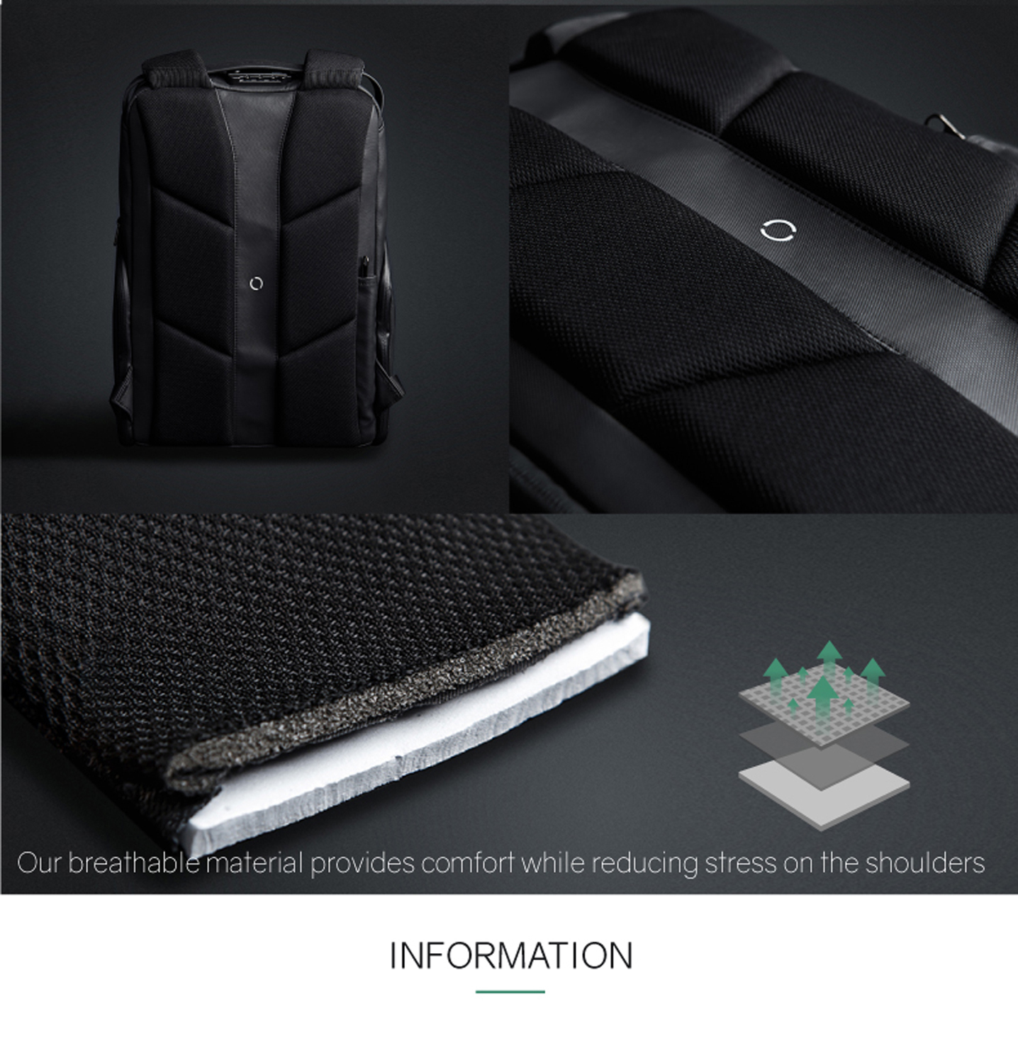 Вместительный водозащищенный рюкзак FlexPack Pro, обладатель премий iF Design Award 2019, Golden Pin Design Award, China Outstanding Industrial Design (CEID) Award, Governor Cup Industrial Design Excellence Award. Сделан из комбинации высокопрочных устойчивого к порезам и трению водоотталкивающих материалов: полиэстера и ткани многослойного плетения разных типов (нейлон, полиэстер и стекловолокно) черного и темно-серого цветов. Не требует специального ухода. Размер рюкзака 47х34х18 см, объем 18 л, вес 1330 гр. Рюкзак закрывается на водонепроницаемую молнию, которую можно зафиксировать с помощью кодового замка TSA007 с функцией таможенного досмотра. Конструкция рюкзака достаточно жесткая, не деформируется. Внутри рюкзака есть специальный карман, в который можно поместить powerbank, т к в него приходит USB-кабель (600 мм, 0,5-0,7 А, 5В), соединенный с портом на внешней стороне рюкзака для легкого подключения к смартфону. Это оригинальная запатентованная система зарядки K EasyCharging 1.0 с помощью USB-порта, расположенного в борту рюкзака, и кабеля, идущего к powerbank, что делает мобильную зарядку более удобной. По бокам рюкзака расположены 2 easy access кармана размером 22х12 см на водонепроницаемых молниях для термокружки, бутылки с водой, зонта, смартфона или других относительно небольших предметов. Детально продуманная организация отделений позволяет грамотно распределить вес. Самые тяжелые предметы располагаются ближе к спине, например, в отделении с мягким покрытием для ноутбука диагональю до 15,6”. Ноутбук надежно фиксируется и не перемещается при ходьбе. Внутри рюкзака есть 5 дополнительных карманов на молниях: 3 кармана 15-17х21-26 см и 2 боковых кармана с отделениями для телефона и мелочей 11,5х20 см. Специальная анатомическая конструкция вентилируемых мягких спинки и лямок и дополнительная поперечная лямка на магнитной застежке снижает нагрузку на плечи и спину, вес рюкзака воспринимается на 20-25% легче, чем при использовании стандартных моделей рюкзаков. На лямке специальная петля для очков или наушников. Сверху рюкзака есть удобная ручка из высококачественной прочной резины, за которую его можно нести или зафиксировать на ручке чемодана. Рюкзак оснащен стальным тросом, которым можно обхватить неподвижный предмет и затем зафиксировать в кодовом замке.