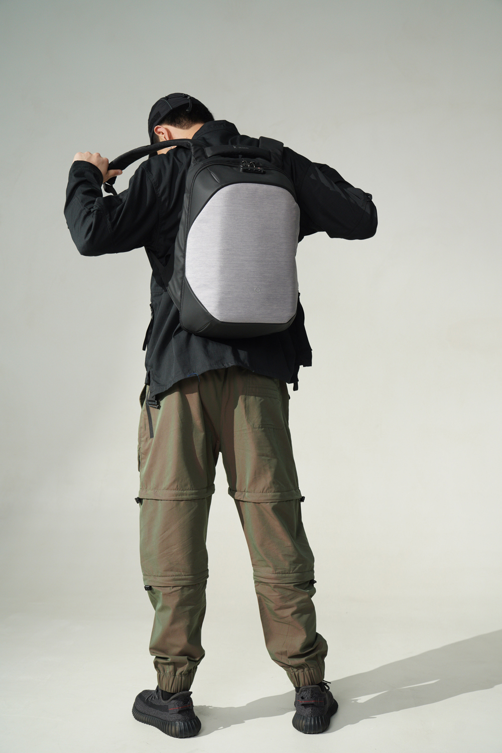 Вместительный рюкзак для путешественников ClickPack из комбинации светло-серого и черного цветов, обладатель премий Good Design Award 2017, Red Dot Design Award 2018, iF Design Award 2018, International Design Excellence Award. Размер рюкзака 46х34х16 см, объем 17,3 л, вес 1040 гр. Сделан из прочного устойчивого к трению водоотталкивающего многослойного полиэстера, с двухслойной защитой от дождя и не требующего специального ухода. Конструкция достаточно жесткая, не деформируется. Детально продуманная организация отделений позволяет грамотно распределить вес. Самые тяжелые предметы располагаются ближе к спине, например, в отделении размером 35х27,5х3 см для ноутбука диагональю до 15,6” и в кармане размером 13,5х25 см для планшета диагональю до 10”. Благодаря плотным перегородкам и эластичным фиксаторам ноутбук и планшет надежно фиксируются и не перемещаются при ходьбе. Специальная анатомическая конструкция и вентилируемая мягкая спинка снижают нагрузку на плечи и спину, вес рюкзака воспринимается на 20-25% легче, чем при использовании стандартных моделей рюкзаков. Конструкция рюкзака позволяет раскрыть его на 180°, чтобы аккуратно уложить в рюкзак много различных предметов. Дополнительно в основном отделении расположены еще 8 карманов различного функционала. 6 открытых карманов под ручки и различные мелочи, 1 карман на молнии размером 9х16 см и карман на липучке для powerbank, в который приходит USB-кабель системы зарядки K EasyCharging, соединенный с USB-портом в борту на внешней стороне рюкзака для легкого подключения к смартфону. Рюкзак закрывается на двойную укрепленную молнию YKK, которую можно зафиксировать с помощью кодового замка TSA007 с функцией таможенного досмотра. Широкие и прочные лямки крепятся к небольшому тканевому борту, что позволяет рюкзаку как бы обхватывать вашу спину. В одном из бортов расположен USB-порт, а в другом - чехол для зонта или бутылки с водой, который при использовании фиксируется специальным креплением. На правой лямке рюкзака находится easy access карман размером 12х6 см на молнии, на левой - открытый карман 10х5 см. На внешней стороне рюкзака в стыке серого и черного цветов спрятался треугольный карман на молнии размером 16х9 см с застежкой фастекс для ключей, которая позволяет вам легко отстегнуть/пристегнуть ключи. На спинке рюкзака расположен внешний потайной карман размером 16х28 см на молнии. Для его защиты достаточно того, что он вплотную прилегает к вашей спине и вытащить что-то из него без снятия рюкзака невозможно. В дополнение к вышеперечисленным средствам защиты рюкзак ClickPack оснащен стальным тросом, которым можно обхватить неподвижный предмет и затем зафиксировать в кодовом замке. Сверху расположена ручка, за которую при необходимости удобно нести рюкзак в руках или закрепить на выдвижной ручке чемодана. На углах рюкзака размещены светоотражающие элементы, которые в темное время суток равномерно отсвечивают практически на 360° и делают вас заметными на расстоянии до 100 метров.