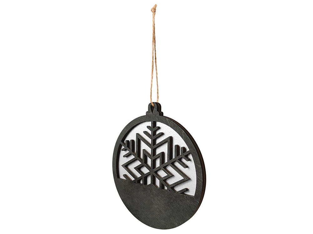 Стильная и минималистичная подвеска в форме снежинки выполнена из натуральной березовой фанеры. Сочетание черного и серебристого оттенков создаёт ощущение зимнего холода и утончённой простоты. Идеально подходит для украшения интерьера, ёлки или упаковки подарка. Такой сувенир подчеркнёт внимание к деталям и станет оригинальным акцентом в корпоративном или праздничном наборе.