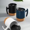 Эта кружка — стильное сочетание функциональности и дизайна. Корпус из керамики сохраняет напиток теплым, нижняя часть из пробки защищает поверхность от нагрева и скольжения, а пластиковая крышка предотвращает проливание. Эргономичная ручка делает использование особенно удобным.