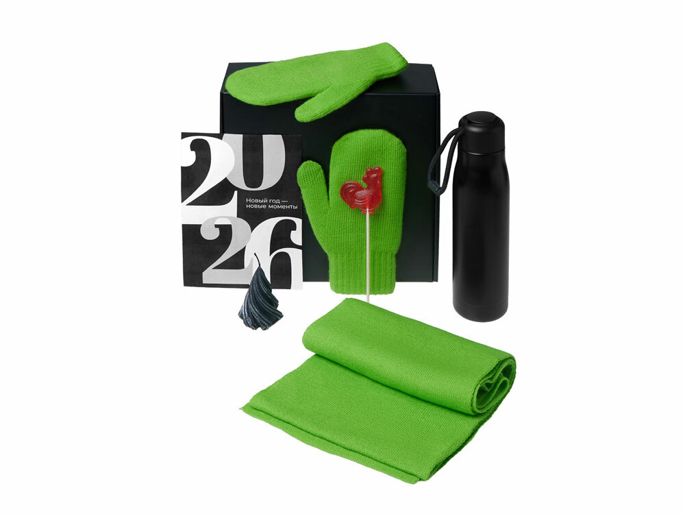 Подарочный набор с варежками, шарфом и термосом, зеленое яблоко в ассортименте цветов, материалов и моделей