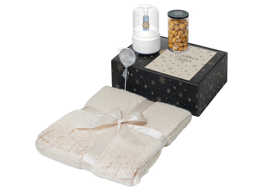 Подарочный набор с пледом, увлажнителем и попкорном, бежевый в ассортименте цветов, материалов и моделей