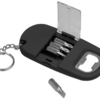 Брелок включает в себя 2 плоские и 2 крестообразные насадки и прочную металлическую открывалку. Корпус сделан из плотного пластика с мягким покрытием soft-touch. Встроенный фонарик позволяет подсвечивать рабочую зону.