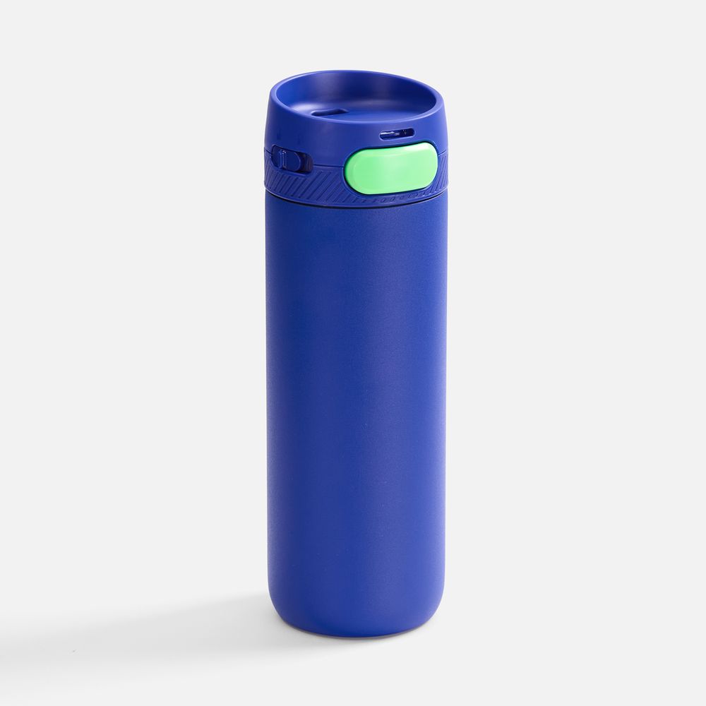 Термостакан X1 с цветной кнопкой, синий с зеленым в ассортименте цветов, материалов и моделей
