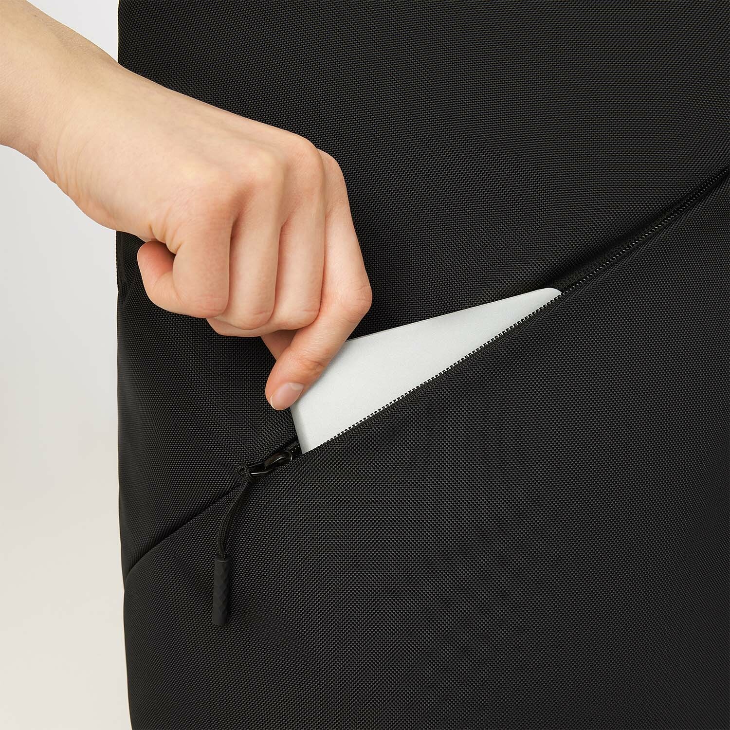 Основное отделение с карманом для ноутбука (до 15,6") и фиксатором на липучке - техника надёжно зафиксирована и защищена от ударов. Внешний карман на молнии подойдет для ключей, кошелька, наушников и других мелких предметов. Есть багажная лента на спинке.