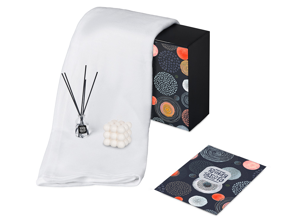 Подарочный набор с пледом, свечой и диффузором, белый в ассортименте цветов, материалов и моделей