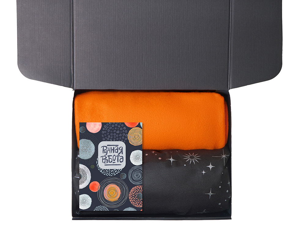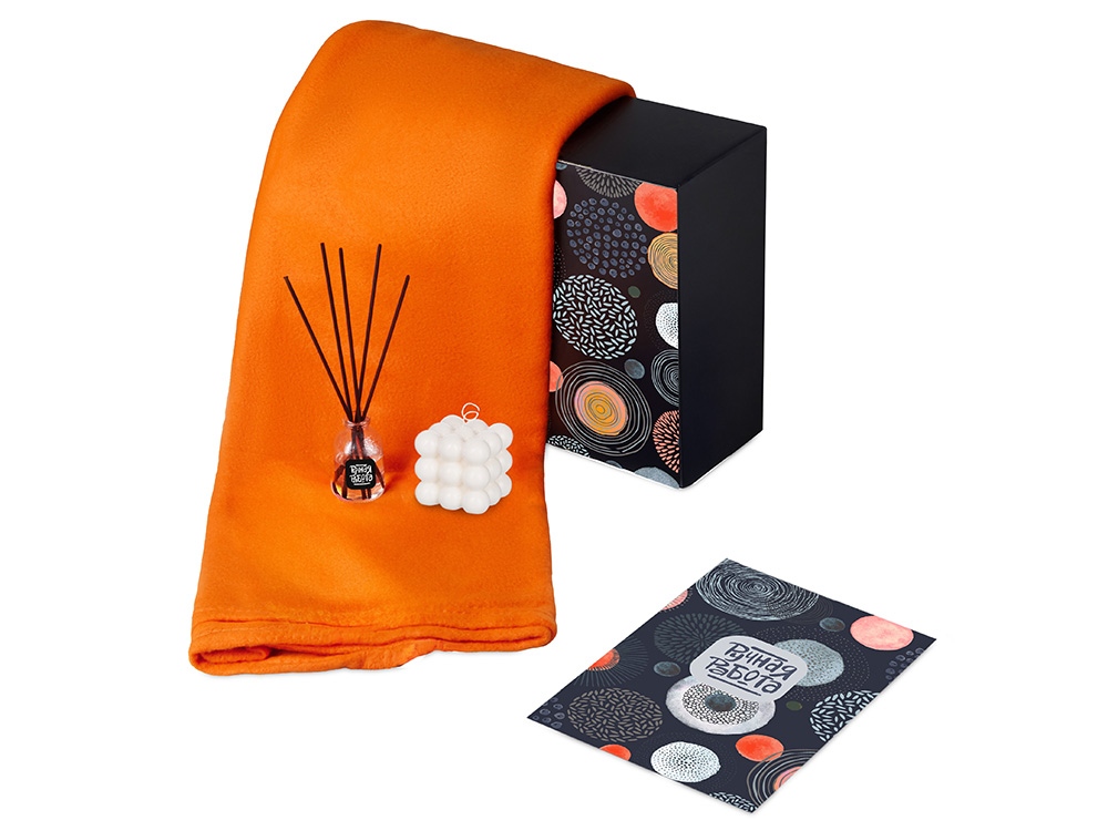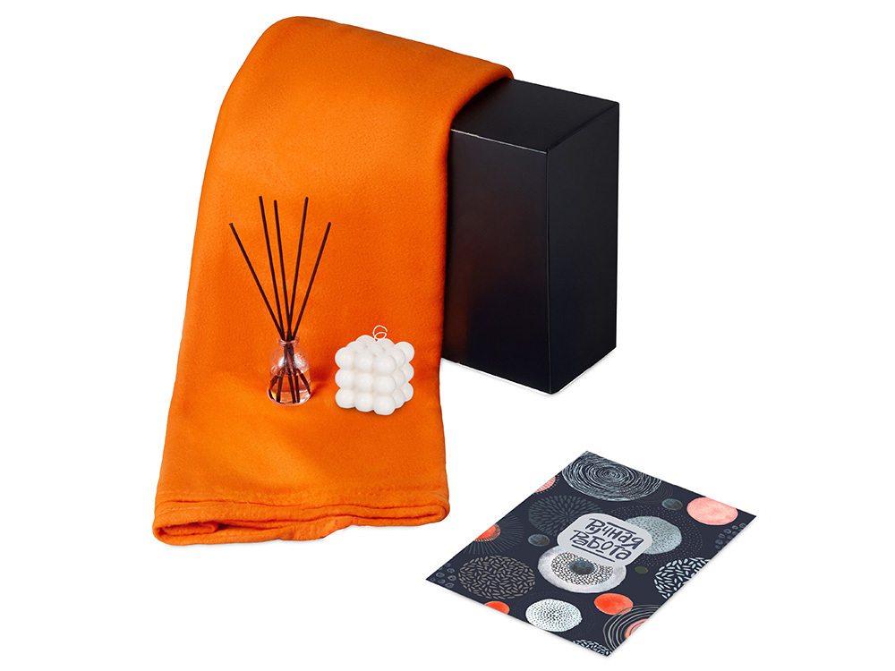 Подарочный набор с пледом, свечой и диффузором, оранжевый в ассортименте цветов, материалов и моделей