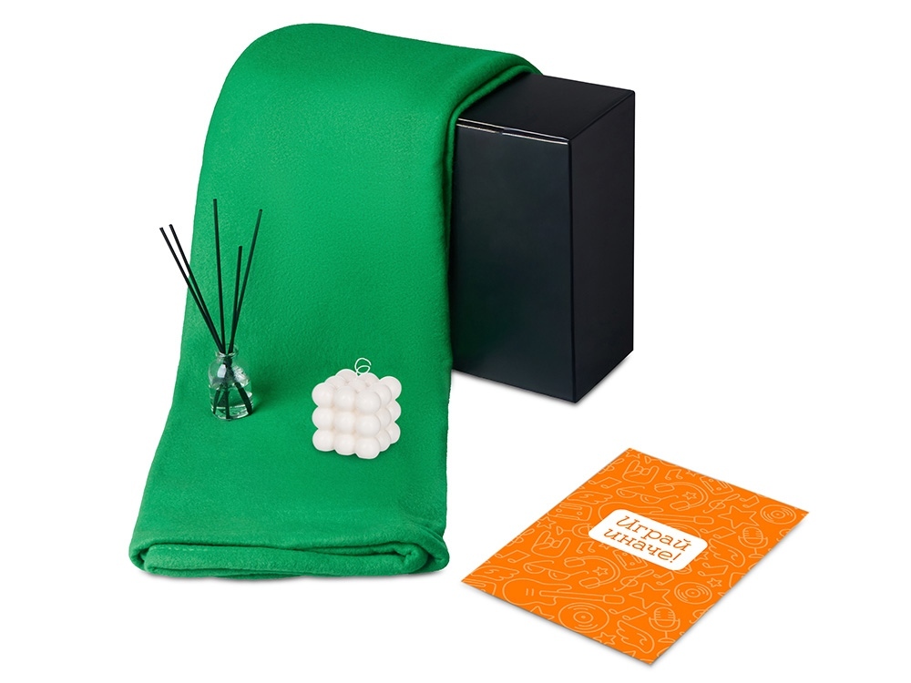 Подарочный набор с пледом, свечой и диффузором, зеленый в ассортименте цветов, материалов и моделей