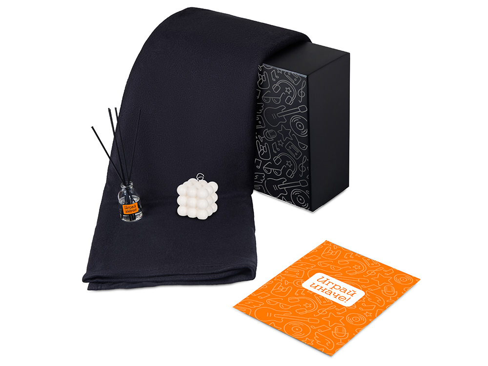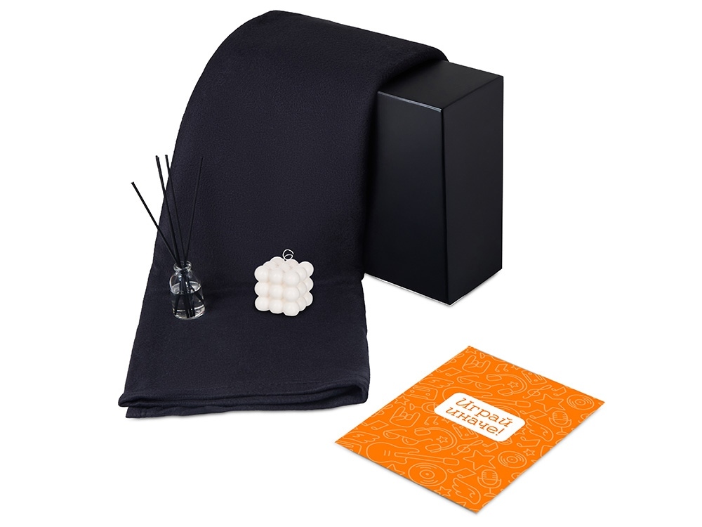 Подарочный набор с пледом, свечой и диффузором, черный в ассортименте цветов, материалов и моделей