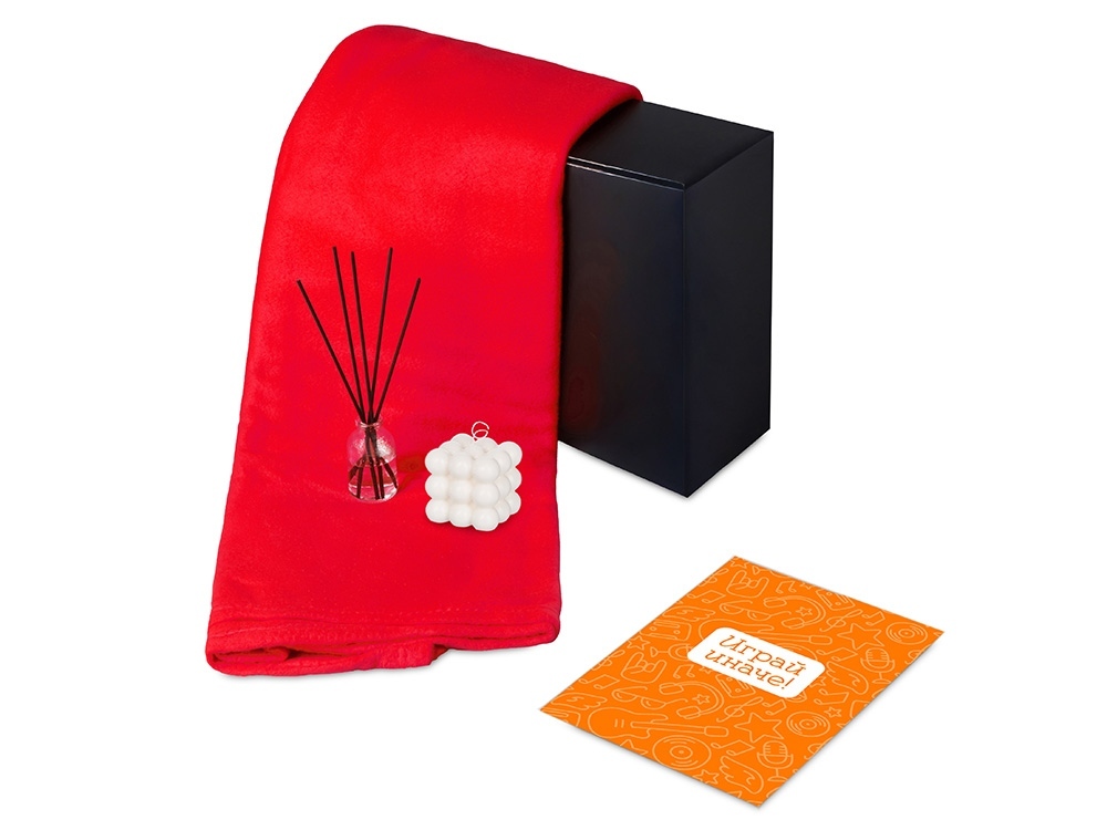 Подарочный набор с пледом, свечой и диффузором, красный в ассортименте цветов, материалов и моделей