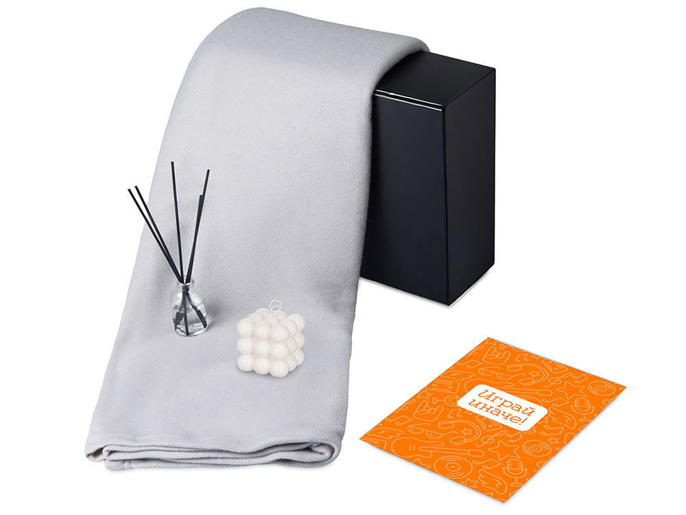 Подарочный набор с пледом, свечой и диффузором, серый в ассортименте цветов, материалов и моделей