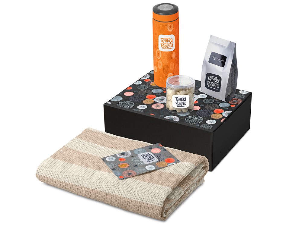 Подарочный набор «Re:y. Warm» с пледом, термосом и чаем в ассортименте цветов, материалов и моделей