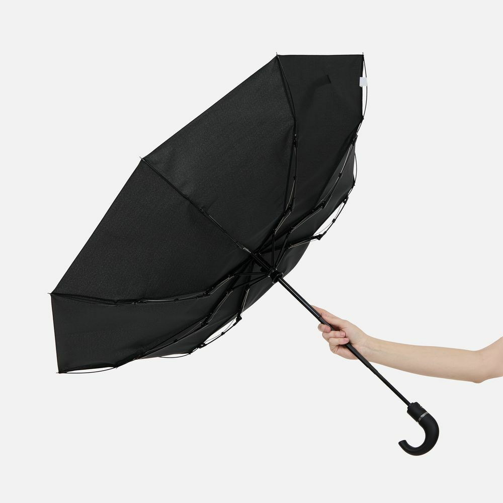 Классический складной зонт-автомат с эргономичной J-образной ручкой — надежный компаньон в дождливые ветреные дни.