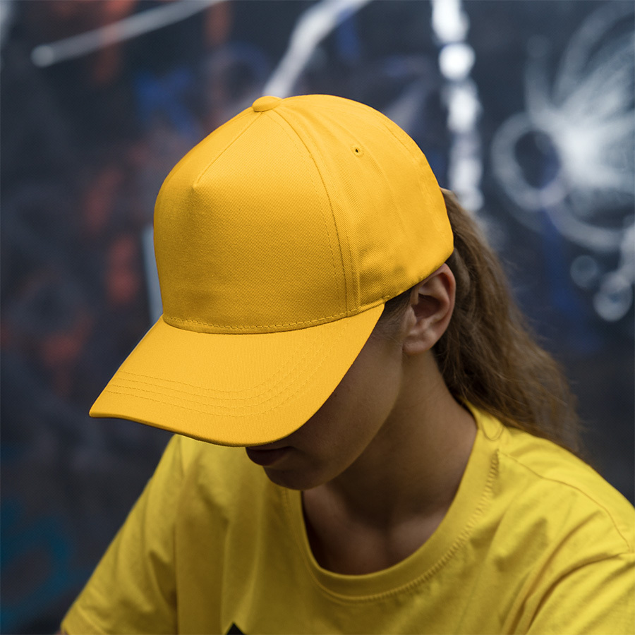 Бейсболка BREEZE – доступная и удобная бейсболка из 100% хлопка. Жесткий козырек, 4 обшивных люверса, 5 клиньев без лобового шва, застёжка-липучка.Цвет, близкий к Pantone 1225 C. 58,5 см - средний размер, с помощью застёжки его можно увеличить или уменьшить до необходимого.