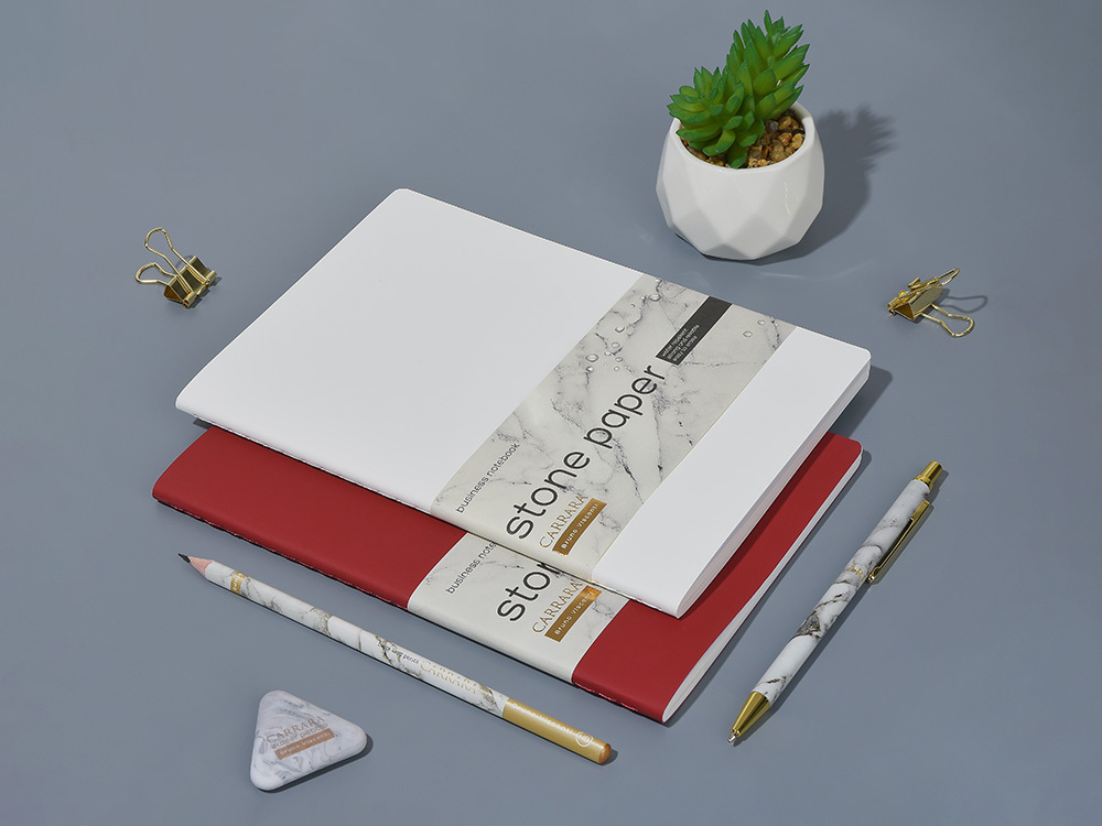 Тетрадь серии «Carrara» ТМ Bruno Visconti формата А5 - обладательница гибкой обложки из искусственной кожи с приятным тактильным ощущением благодаря покрытию Soft Touch. Плотная нить не только надежно скрепляет обложку и блок, но и является дополнительным декоративным элементом, украшающим тетрадь. Блок изготовлен из каменной бумаги плотностью 144 г/кв.м, которая отличается особой гладкостью и повышенной прочностью. Она не боится воды, достаточно просто протереть сухой салфеткой.