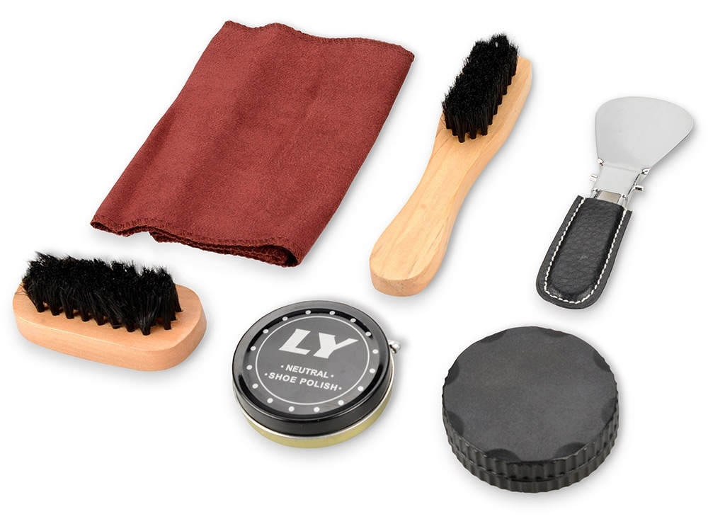 Подарочный набор для чистки обуви включает в себя 8 предметов, которые предназначены для поддержания чистоты вашей обуви. В комплект входят чистящие средства, так что не придется покупать их отдельно. Набор упакован в солидный футляр "под кожу", который удобно брать в дорогу, в командировку. Набор представлен также и в других цветах.