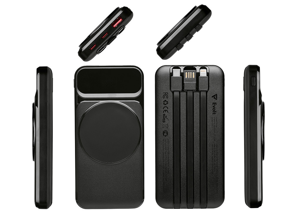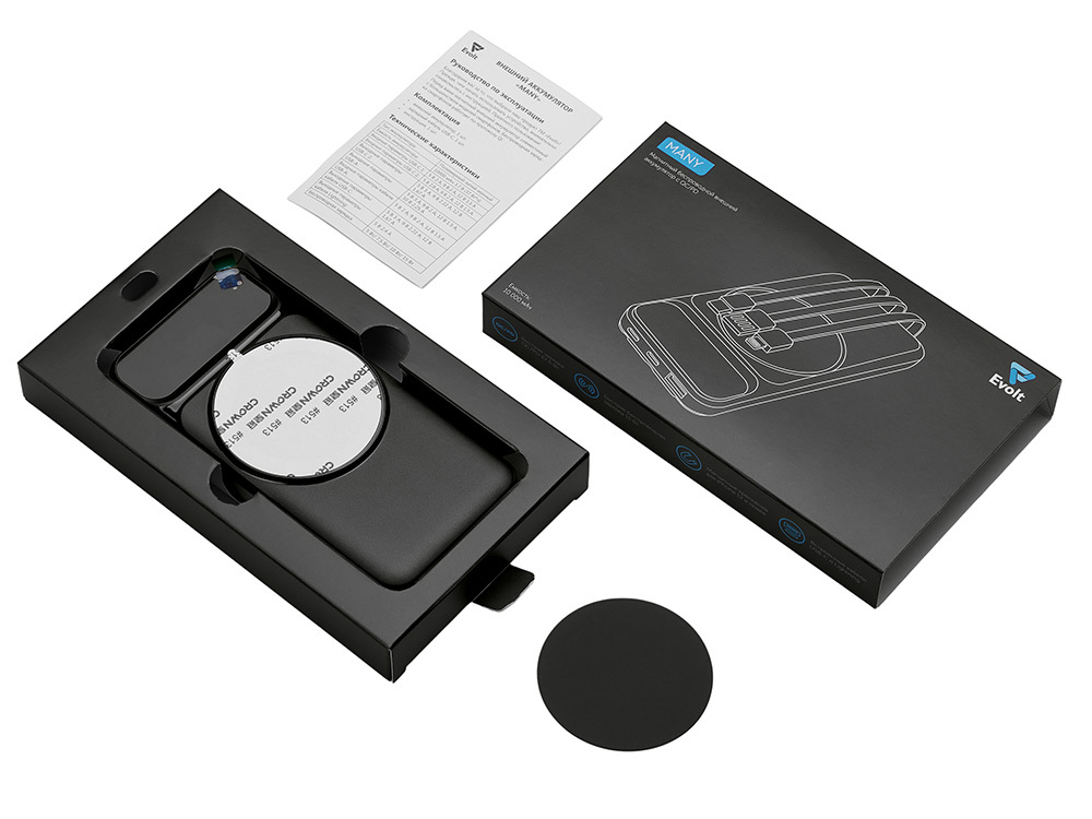 Функциональный и удобный внешний аккумулятор на 10 000 мАч обеспечивает быструю зарядку как по кабелям, так и беспроводным способом, поддерживая современные стандарты скорости. Цифровой дисплей на верхней панели мгновенно показывает точный уровень заряда, а встроенные кабели Lightning, USB-C и входной USB-A устраняют необходимость в дополнительных проводах — всё, что нужно для каждодневного использования, уже есть в самом гаджете. Компактные габариты, сопоставимые с размером смартфона, делают устройство идеальным для путешествий и повседневного использования. Сильные магниты гарантируют надёжное крепление при беспроводной зарядке. В комплекте есть силиконовая накладка: перед использованием удалите защитный стикер и прикрепите её к корпусу. - Встроенные кабели (Lightning, USB-C, USB-A) — не нужно искать дополнительные кабели: зарядка других устройств и подзарядка аккумулятора происходят через встроенные кабели. - Сильные магниты - Цифровой дисплей уровня заряда и статуса зарядки - Функции быстрой проводной и беспроводной зарядки - Упаковка с удобным и быстрым открытием