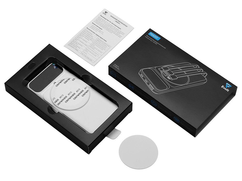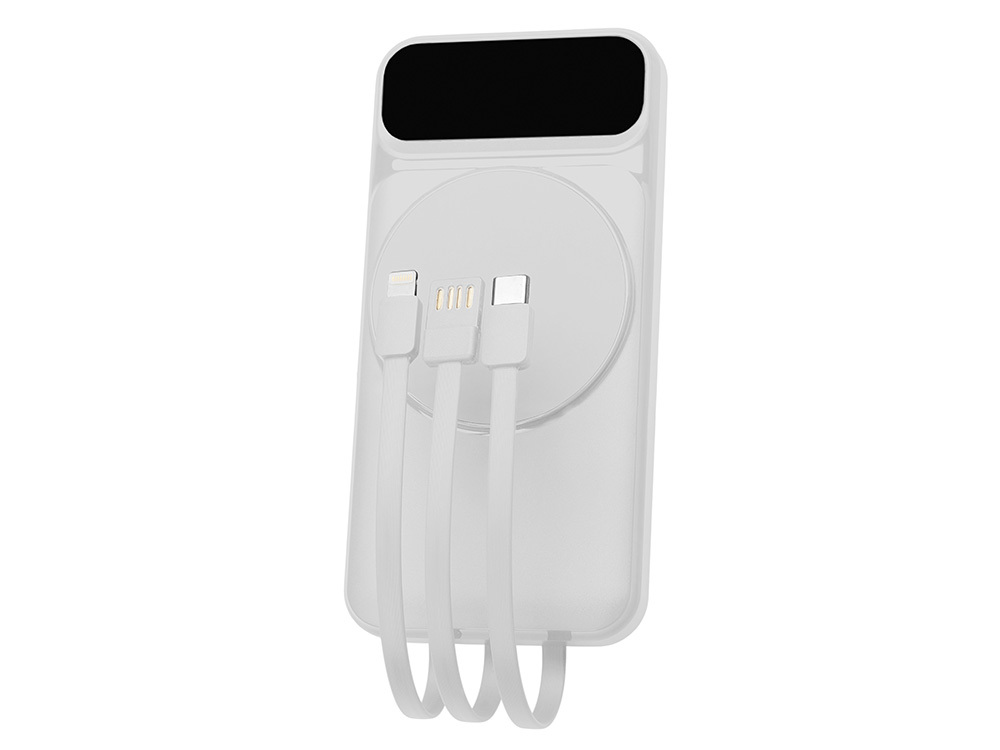 Магнитный беспроводной внешний аккумулятор со встроенными кабелями «Мэни»,быстаря зарядка, 10000 мАч, белый в ассортименте цветов, материалов и моделей