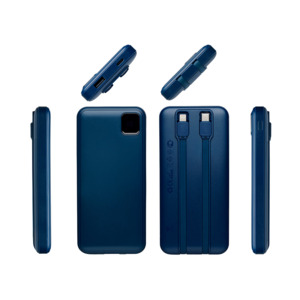 Внешний аккумулятор со встроенными кабелями «Фрэйм», 10000мач, темно-синий в ассортименте цветов, материалов и моделей