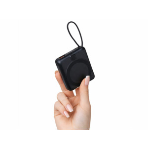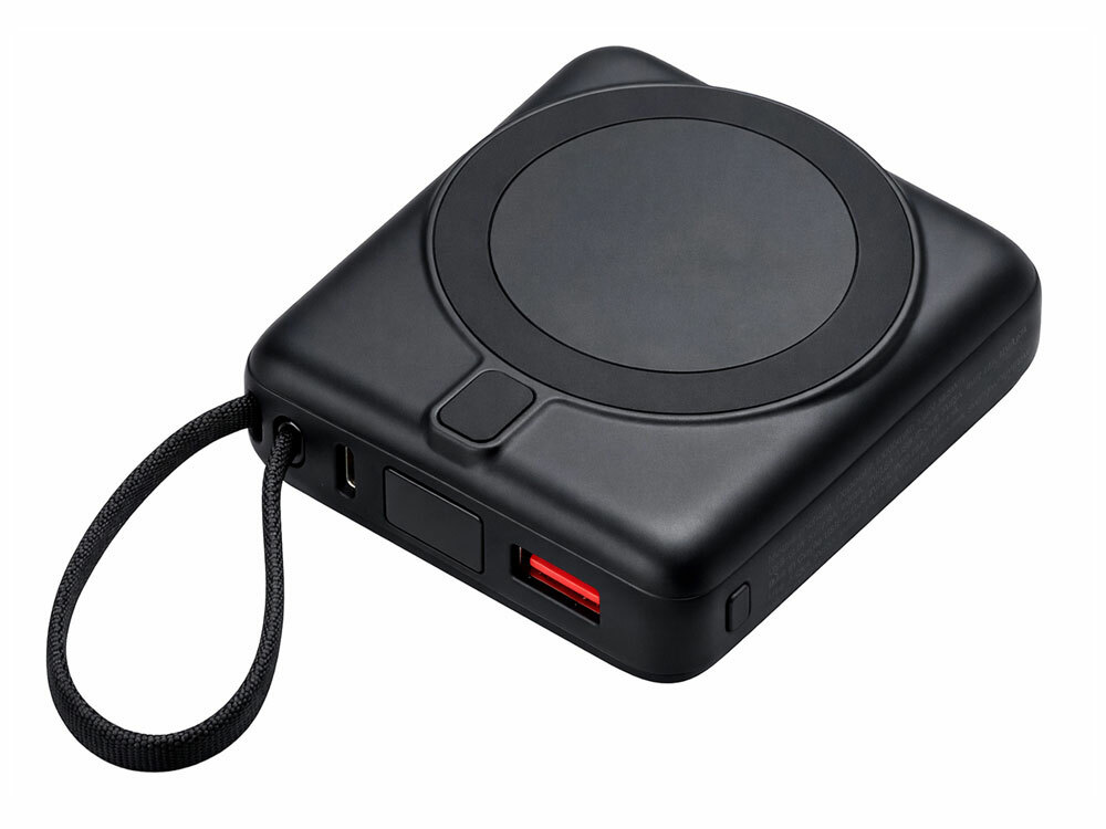 Магнитный пауэрбанк с эффектными возможностями брендирования. Компактный беспроводной аккумулятор с магнитным креплением MagSafe — идеальный корпоративный подарок для клиентов и партнеров. Уникальная особенность: логотип с подсветкой виден даже когда пауэрбанк прикреплен к телефону. Встроенный двусторонний USB-C кабель устраняет необходимость носить дополнительные провода — заряжайте устройства и сам аккумулятор одним кабелем. - Светящаяся гравировка —лого всегда на виду - Мощные магниты: надежно держится на телефоне - быстрая беспроводная зарядка + встроенный двунаправленный USB-C кабель - Универсальность: заряжает все современные смартфоны с USB-C, включая новые iPhone - Компактность: всего 6,6×7,5×2,6 см — помещается в карман, - Удобство: встроенный кабель одновременно служит петелькой для переноски
