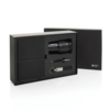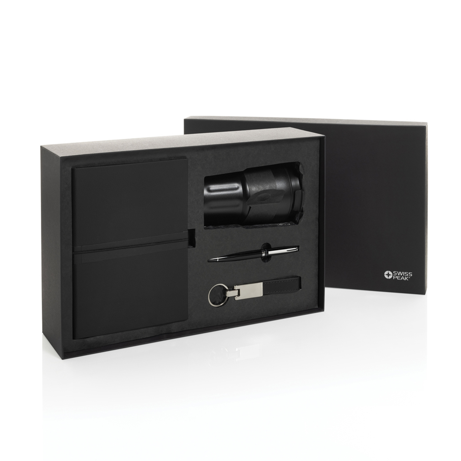 Этот элегантный подарочный набор включает всё необходимое, чтобы рабочий день проходил стильно и комфортно. Термостакан объёмом 350 мл с двойными стенками и вакуумной изоляцией надолго сохранит ваши напитки горячими или холодными. Крышка с защитой от протекания гарантирует, что ваша одежда останется сухой, даже если стакан случайно опрокинется. Премиальный брелок Swiss Peak с глянцевым металлическим покрытием и элегантным ремешком из качественной искусственной кожи — стильный аксессуар, который всегда держит самые важные ключи под рукой. Для заметок и идей в наборе предусмотрены: • Шариковая ручка в деловом стиле с запасом синих чернил, позволяющих провести линию длиной до 1000 метров • Блокнот с мягкой обложкой из переработанного полиэстера и 160 страницами кремового цвета из переработанной бумаги. Все предметы в наборе сертифицированы по стандарту RCS (Recycled Claim Standard). Это гарантирует полностью отслеживаемую цепочку поставок переработанных материалов. В совокупности продукты в этом наборе состоят на 75% из переработанного сырья.