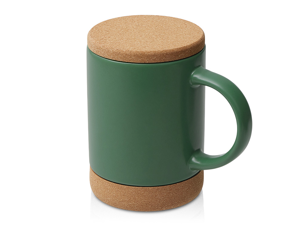 Кружка 450 мл с пробковым дном с крышкой "Корк & Бон", глубокий зеленый в ассортименте цветов, материалов и моделей