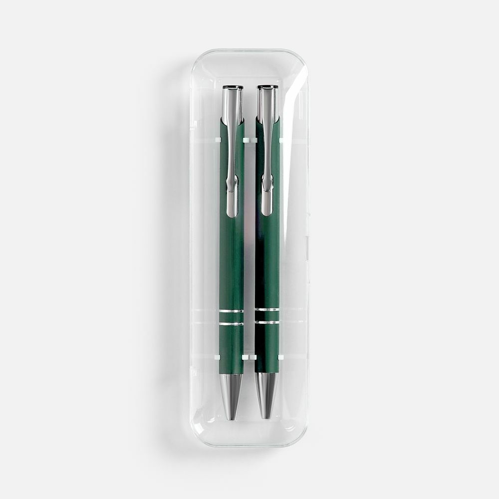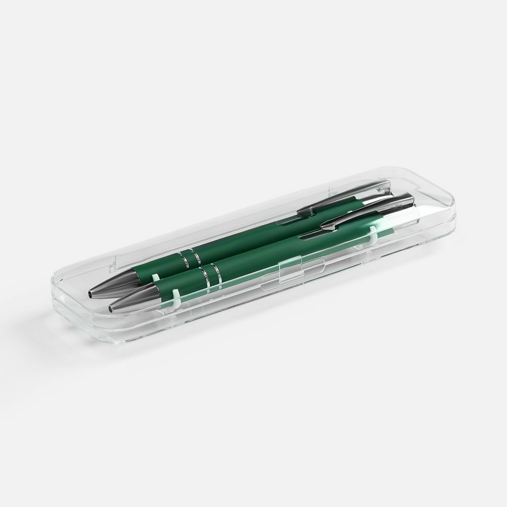 Набор из двух ручек Keskus с покрытием софт-тач в прозрачном пластиковом футляре.
