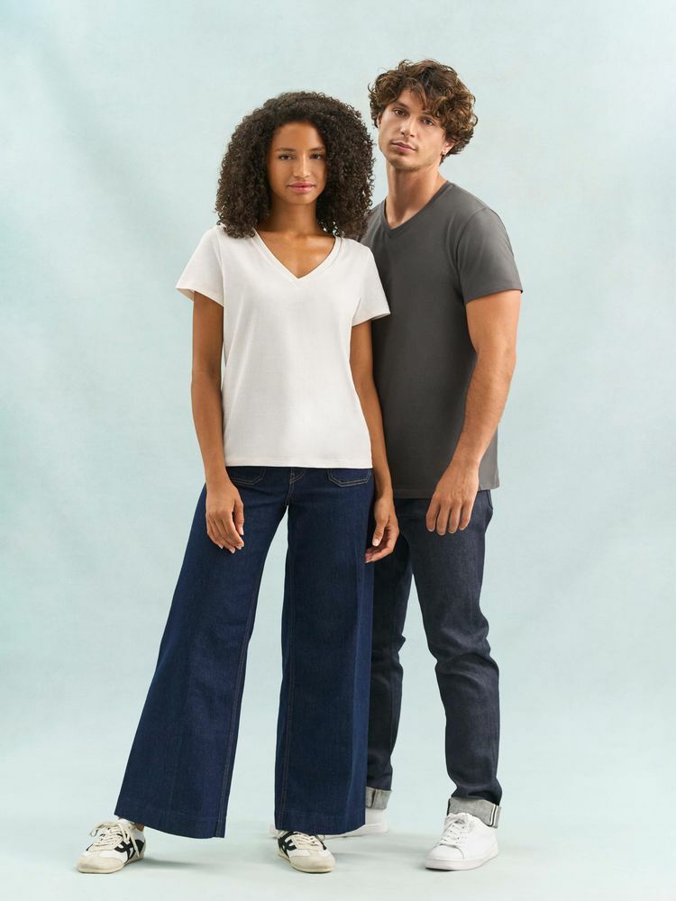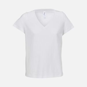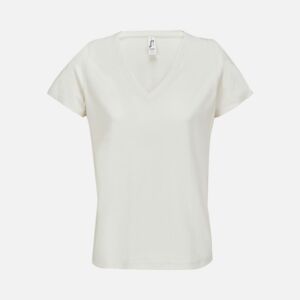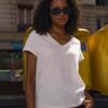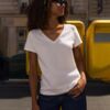 Женская футболка Regent с V-образным вырезом. Такой вырез снова актуален: он визуально удлиняет шею, подчеркивает линию ключиц и добавляет образу легкости.
