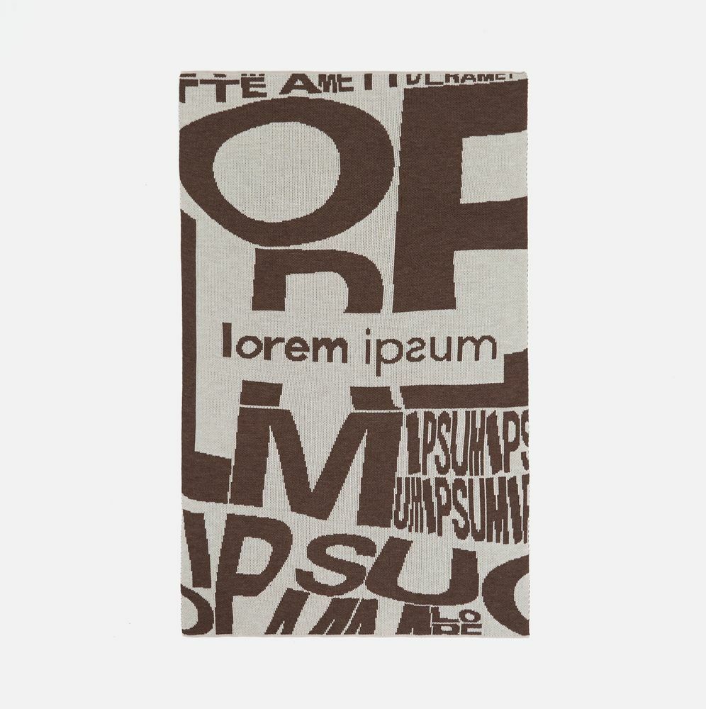 Плед с вывязанным логотипом и индивидуальным рисунком в фирменной цветовой гамме.