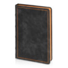 Недатированный ежедневник "Royal" формата А4 с твердой обложкой из искусственной кожи с имитацией нубука украшен художественным бронзовым и блинтовым тиснением. Внутри 192 страницы, выполненные из качественной бежевой бумаги в линейку плотностью 140 г/м². Два шелковых ляссе в цвет обреза блока и обложки облегчают навигацию по записям. Французский корешок дополнительно декорирован изящным бронзовым тиснением в виде виньеток. Скругленные углы обложки и блока подчеркивают стильный дизайн изделия, а блеск бронзового обреза дарит ежедневнику благородный и роскошный внешний вид.
