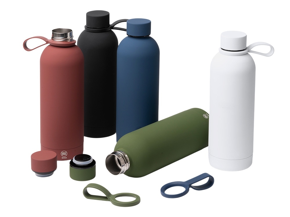 Термобутылка из переработанной нержавеющей стали 304. Мягкая прорезиненная поверхность на корпусе. Удобная силиконовая ручка для переноски. Оснащена противокапельной системой благодаря силиконовому кольцу, встроенному во внутреннюю часть крышки. Крышка и ручка соответствуют цвету корпуса. Объем: 500 мл. - Переработанная нержавеющая сталь 304 - Защита от капель - Нельзя мыть в посудомоечной машине - Поставляется в эко коробке