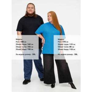 Базовая футболка унисекс прямого силуэта без боковых швов (размеры XS–4XL) или с боковыми швами (размеры 5XL–6XL).