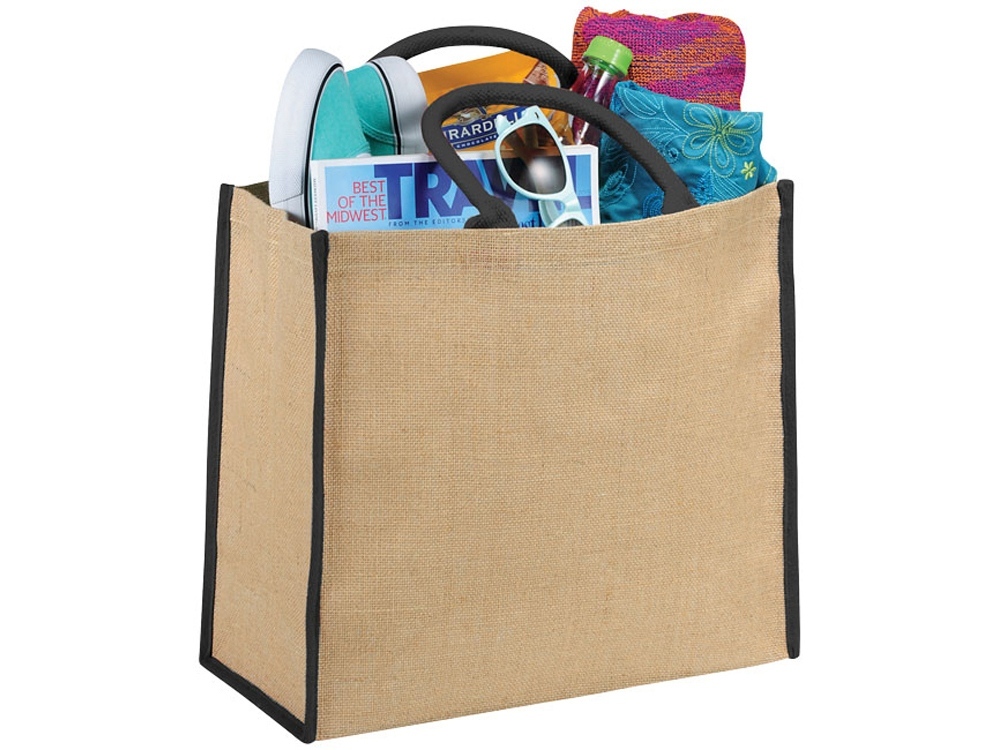 Сумка для покупок. Открытое основное отделение на липучке. Двойные ручки высотой 17 см. Джут.