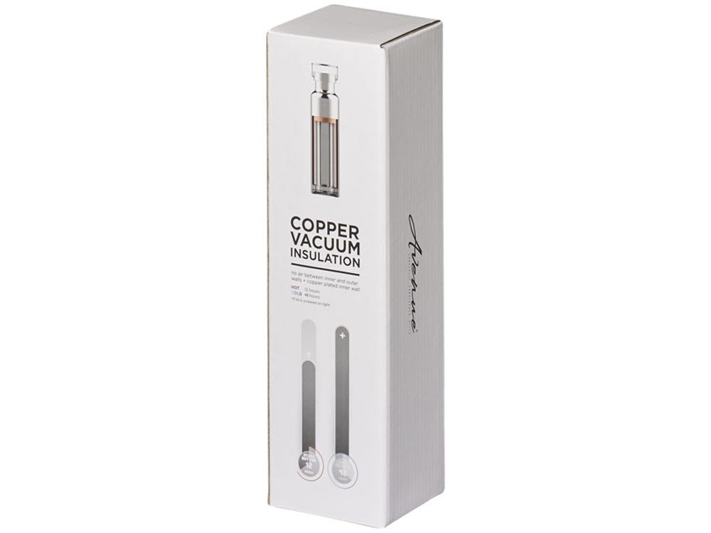 Бутылка с вакуумной медной изоляцией. Прочная конструкция бутылки с двойными стенками из нержавеющей стали с медной изоляцией позволяет вашим напиткам оставаться горячими до 12 часов и холодными до 48 часов. Конструкция так же исключает появление конденсата на внешней поверхности бутылки. Трендовое прочное покрытие. Откручивающаяся крышка из нержавеющей стали, защищенная от протеканий, с удобным отверстием для руки. Широкое отверстие для удобства чистки и наливания напитков. Отлично подойдет для кубиков льда. Объем 650 мл. Нержавеющая сталь.