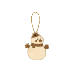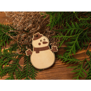 Оригинальное елочное украшение в виде снеговика. Подвеска выполнена из березовой фанеры и тонирована в коричневый цвет. Это елочное украшение – отличный вариант для экоелки. Не хотите использовать елочные игрушки из пластика или стекла? Деревянные сувениры из нашего каталога станут отличным украшением, которые создадут атмосферу уюта в вашем доме.