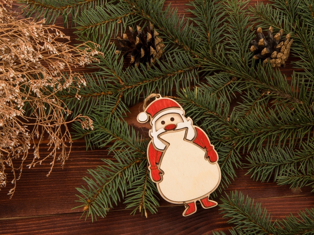 Елочная экоигрушка в виде одного из главных символов нового года - Дед Мороза. Этот атмосферный и праздничный сувенир изготовлен из березовой фанеры и украшен тонировкой красного цвета. Небольшой новогодний презент отлично укладывается в концепцию экоподарка, при производстве и тонировании используются натуральные материалы и красители.