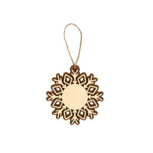 Оригинальное елочное украшение в виде снежинки. Подвеска выполнена из березовой фанеры и тонирована в коричневый цвет. Это елочное украшение – отличный вариант для экоелки. Не хотите использовать елочные игрушки из пластика или стекла? Деревянные сувениры из нашего каталога станут отличным украшением, которые создадут атмосферу уюта в вашем доме.