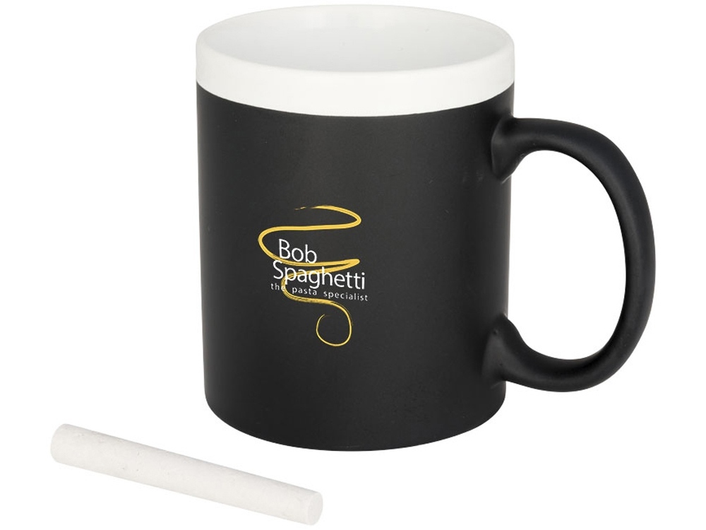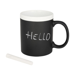 Кружка объемом в 300мл имеет особое покрытие, на котором можно рисовать мелками, тем самым меняя дизайн кружки каждый раз. Мел входит в комплект. Кружка соответствует требованиям EN12875-1. Представлена в белой картонной коробке.