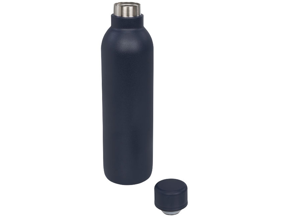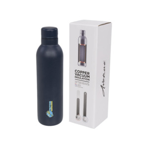 Спортивная бутылка Thor с вакуумной изоляцией объемом 510 мл. Прочная бутылка с двойными стенками из нержавеющей стали и вакуумной медной изоляцией сохраняет напитки холодными в течение 48 часов и горячими в течение не менее 12 часов. Конструкция бутылки предотвращает образование конденсата на внешней стороне. Модное, прочное порошковое покрытие. Герметичная завинчивающаяся крышка из нержавеющей стали. Объем – 510 мл. Предлагается в подарочной коробке Avenue. Нержавеющая сталь.