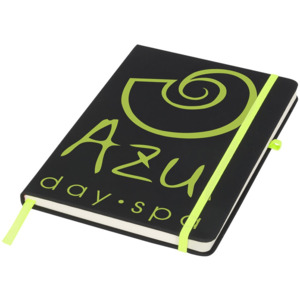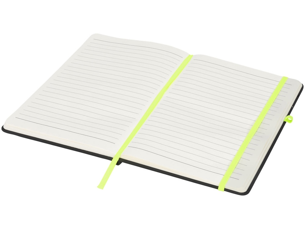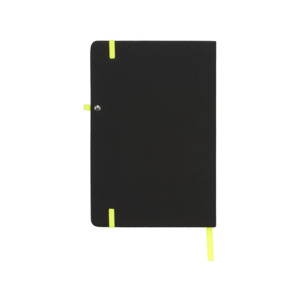 Блокнот Noir среднего размера. Блокнот Noir с мягкой на ощупь черной ПУ обложкой. В каждом блокноте есть цветная застежка, держатель для ручки и лента-закладка. Блокнот содержит 96 листов линованной бумаги (70 г/м²) кремового цвета. ПУ.