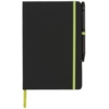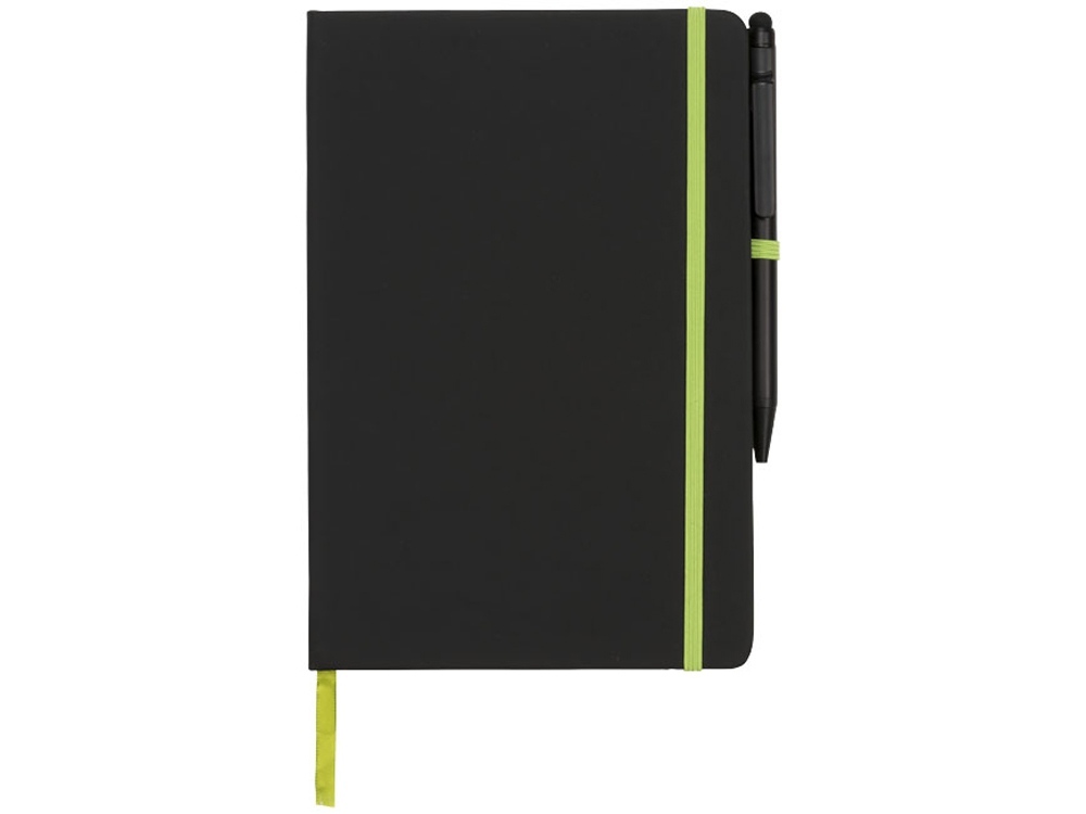 Блокнот Noir Edge среднего размера. Современный и стильный черный блокнот с мягкой на ощупь обложкой. Цветной край и цветные маркеры страниц, застежка-держатель для ручки. Предлагается с черной шариковой ручкой-стилусом. Блокнот содержит 96 листов линованной бумаги (70 г/м²) кремового цвета. ПУ.