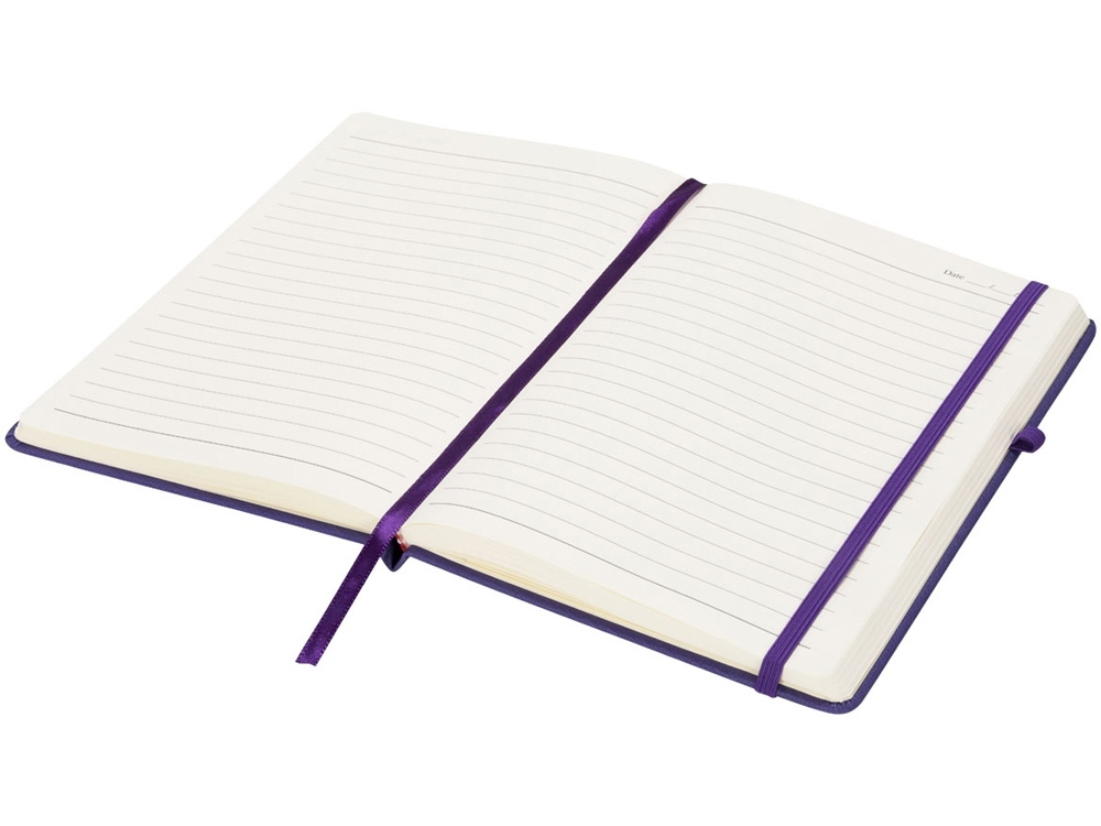 Блокнот Rivista среднего размера. Блокнот Rivista отличается стильным современным дизайном с высококачественной обложкой, идеально подходящей для нанесения логотипа и информации вашей компании. Предлагаются современные цвета. Также предусмотрена эластичная застежка, держатель для ручки, лента-закладка и внутренний кармашек на задней стороне обложки. Содержит 128 листов линованной бумаги (70 г/м²) кремового цвета. ПУ.